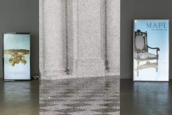 A través de gigantografías, se reprodujeron avisos publicitarios de la mueblería Maple, cuya tienda se ubicaba en Suipacha y Viamonte, el mismo lugar que ocupó la sede anterior del Espacio de Arte de la Fundación OSDE.